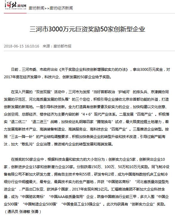 三河市3000万元巨资奖励50家创新型企业